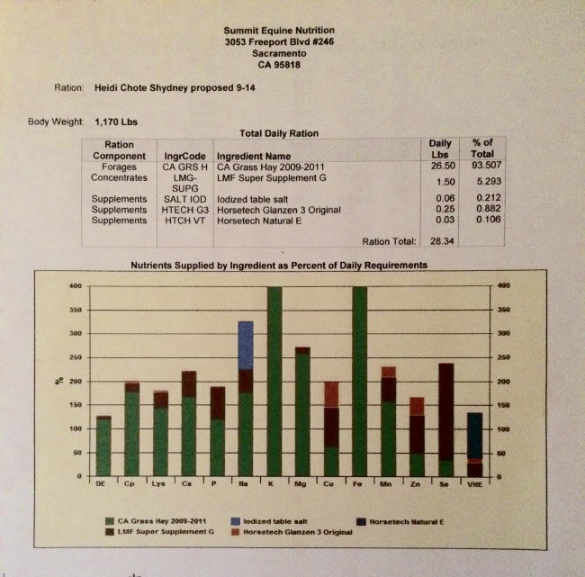 Equine Nutritionist - Summit Equine Nutrition; Dr. Clair Thunes 916-248-8987